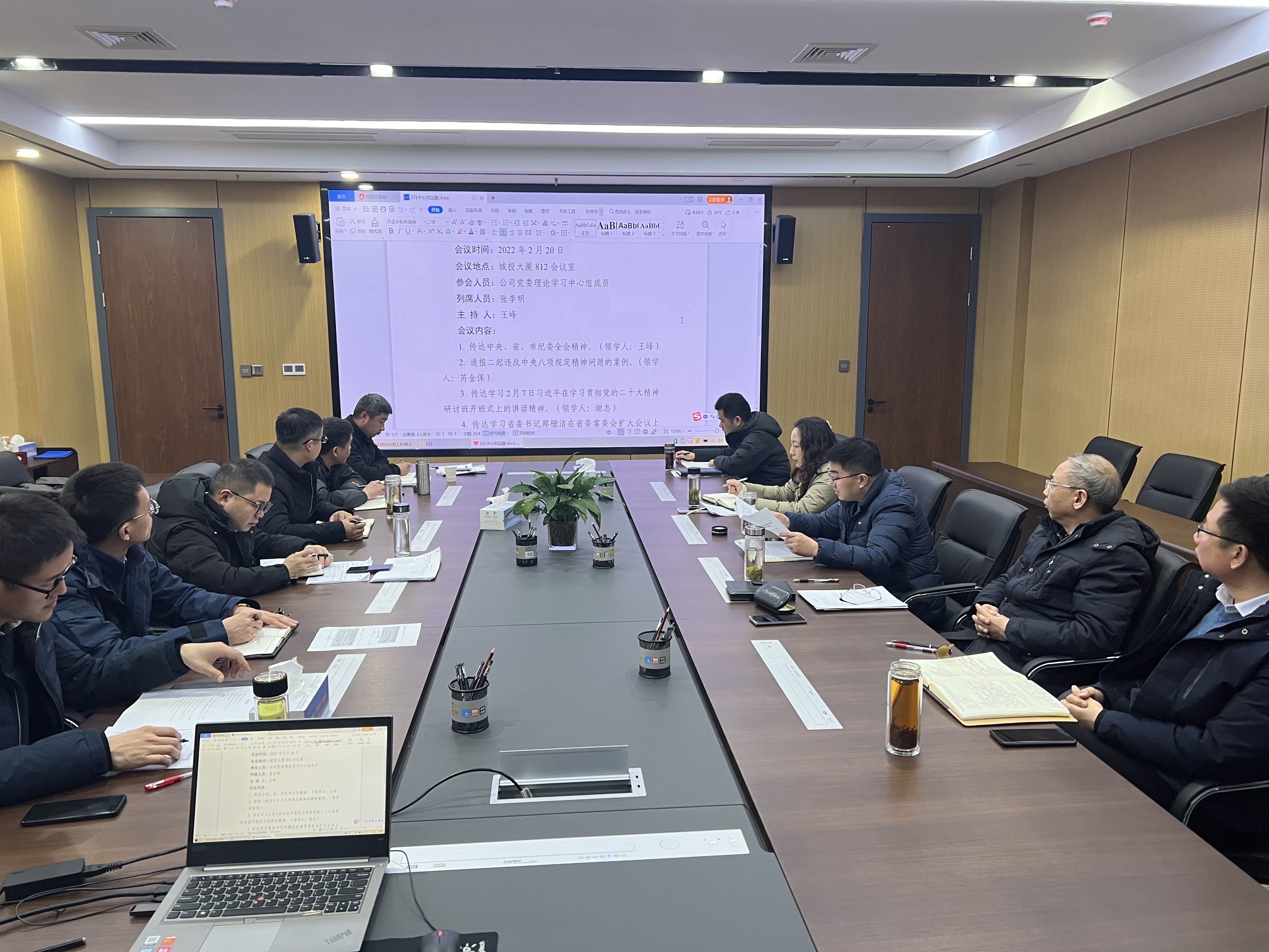 2月20日,市礦投集團召開黨委理論學習中心組(擴大)學習會。會議傳達中央、省、市紀委全會精神,通報二起違反中央八項規(guī)定精神問題的案例。傳達學習習近平總書記在學習貫徹黨的二十大精神研討班開班式上的講話精神;省委書記鄭柵潔在省委常委會擴大會議上的重要講話精神以及市委書記許繼偉在市委理論學習中心組學習會上的重要講話精神。