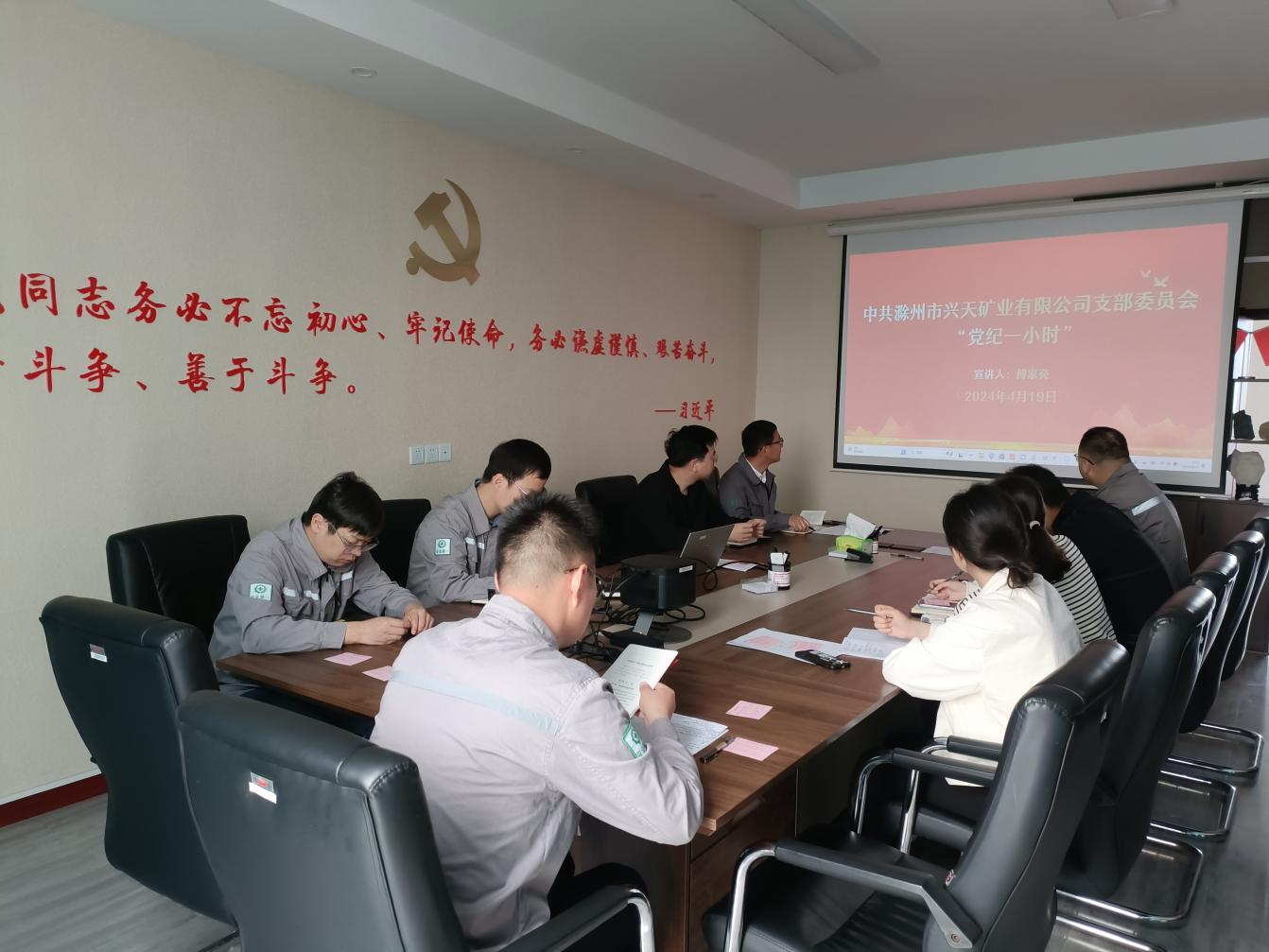 為扎實開展黨紀學習教育工作,4月19日,興天礦業(yè)黨支部組織召開“黨紀一小時”活動,支部紀檢委員傅家亮同志為參會人員深入解讀新修訂的《中國共產(chǎn)黨紀律處分條例》。